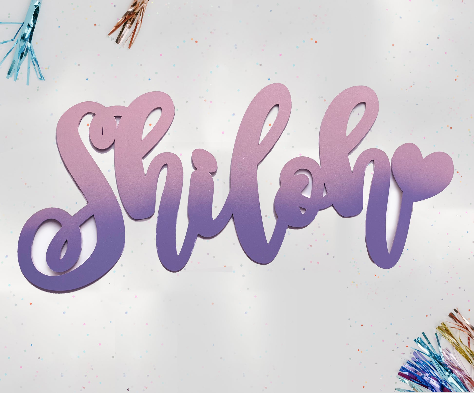 Laser cut from wood and is personalized with any name. It is light enough to stick onto doors or a wall with double sided tape