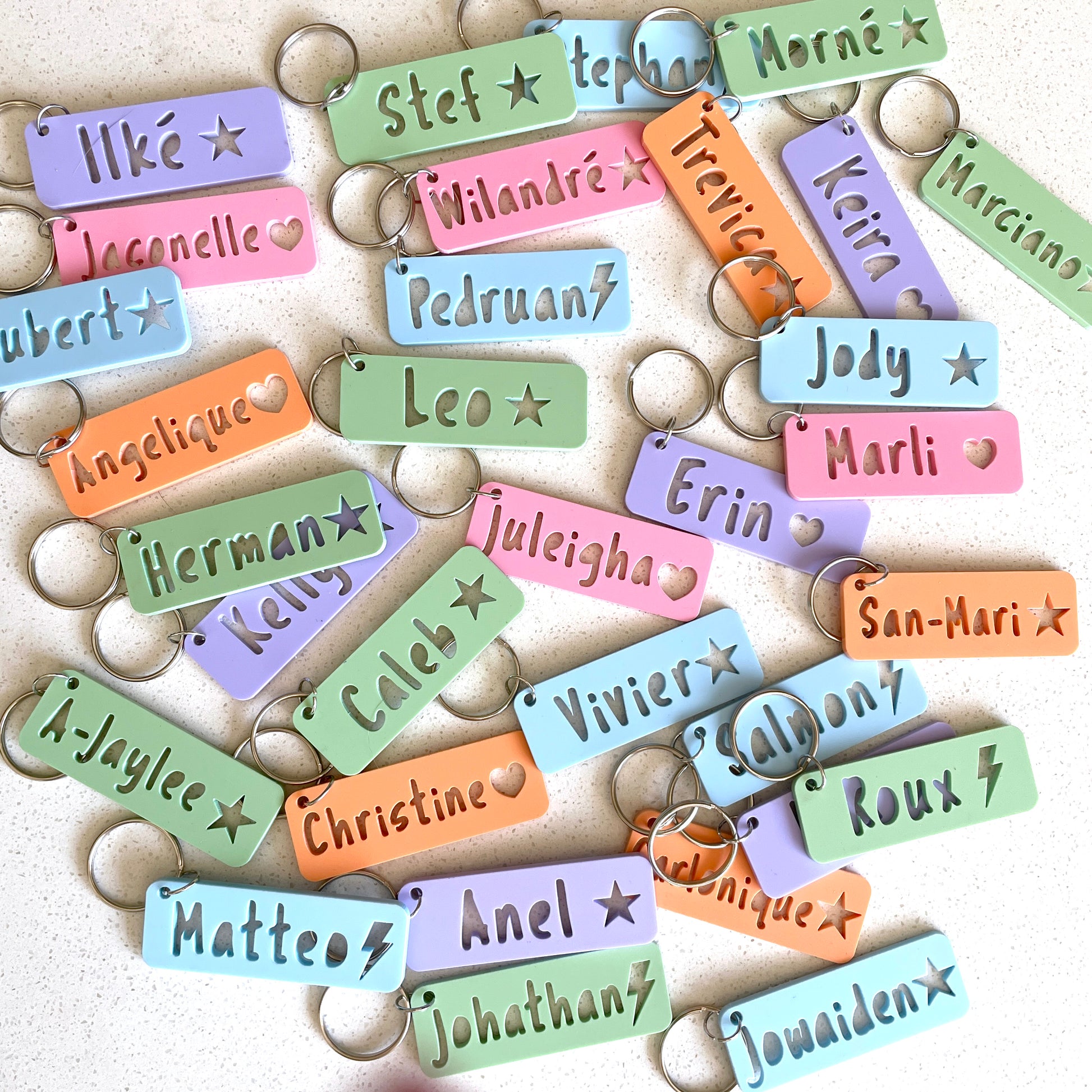 Name key rings laser cut from perspex and they are peronsalised with any length single name