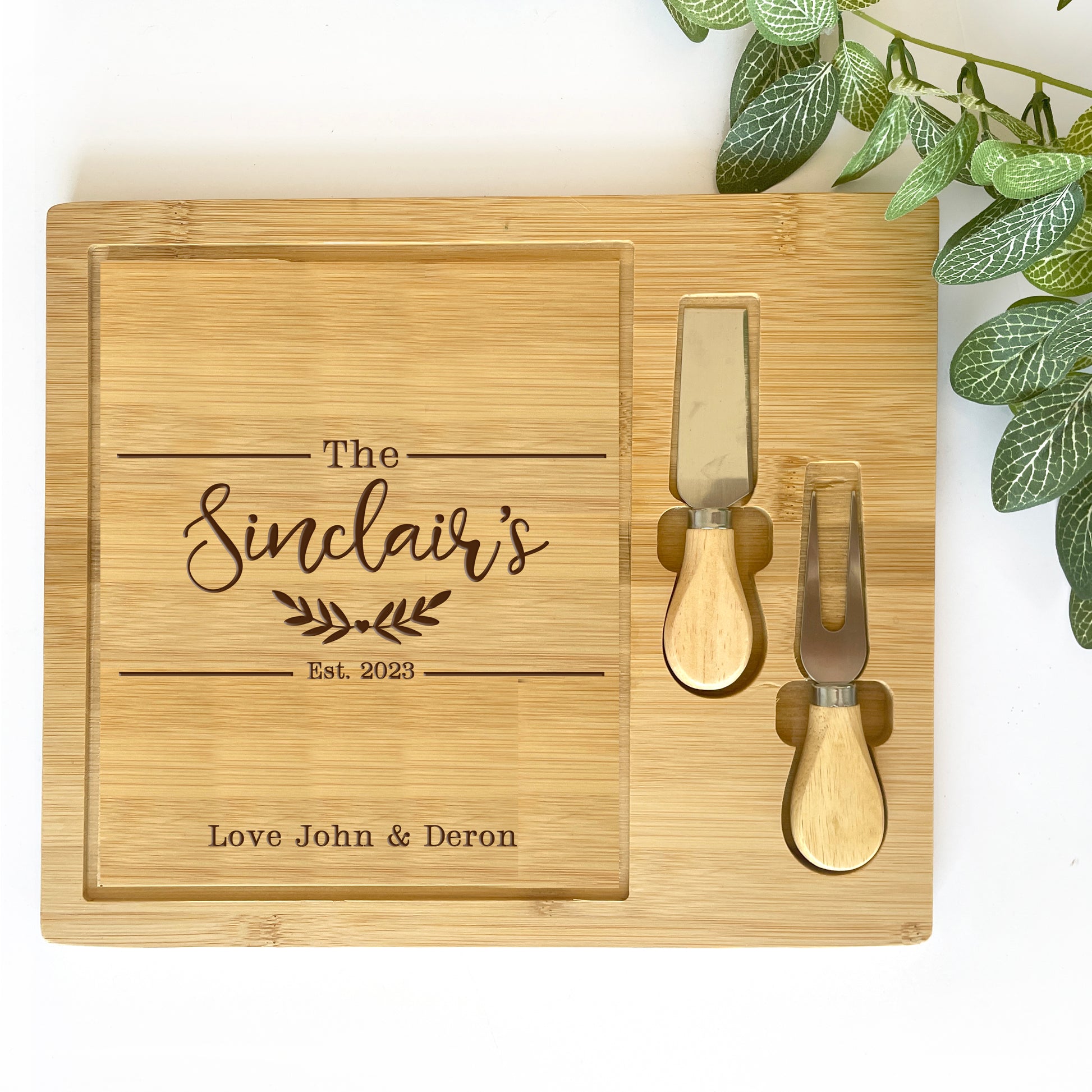 Personalised Cheese Board Set Engraved With Any Surname, Personalised Cutting Board