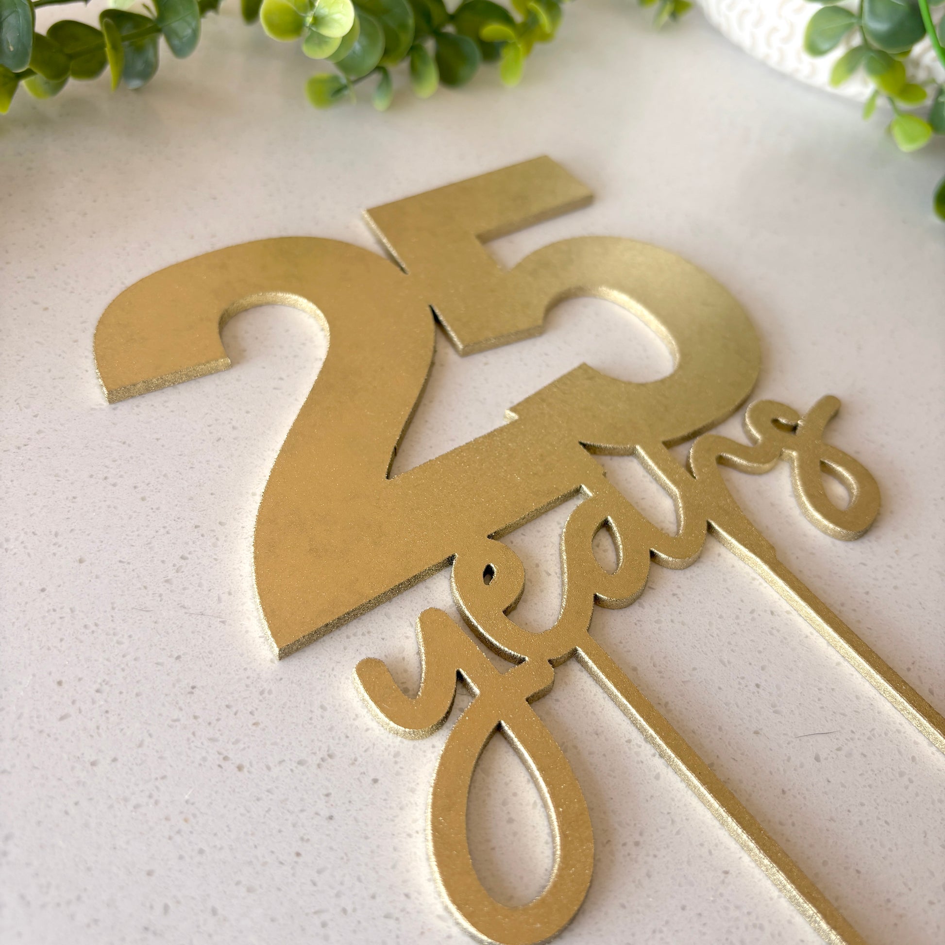 Celebrate your milestone with our Personalized Wooden Cake Topper, featuring any number and the word “years.”