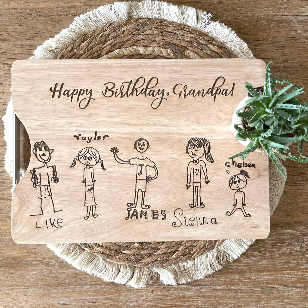 Dad or Grandpa personalised drawing engraved cutting board