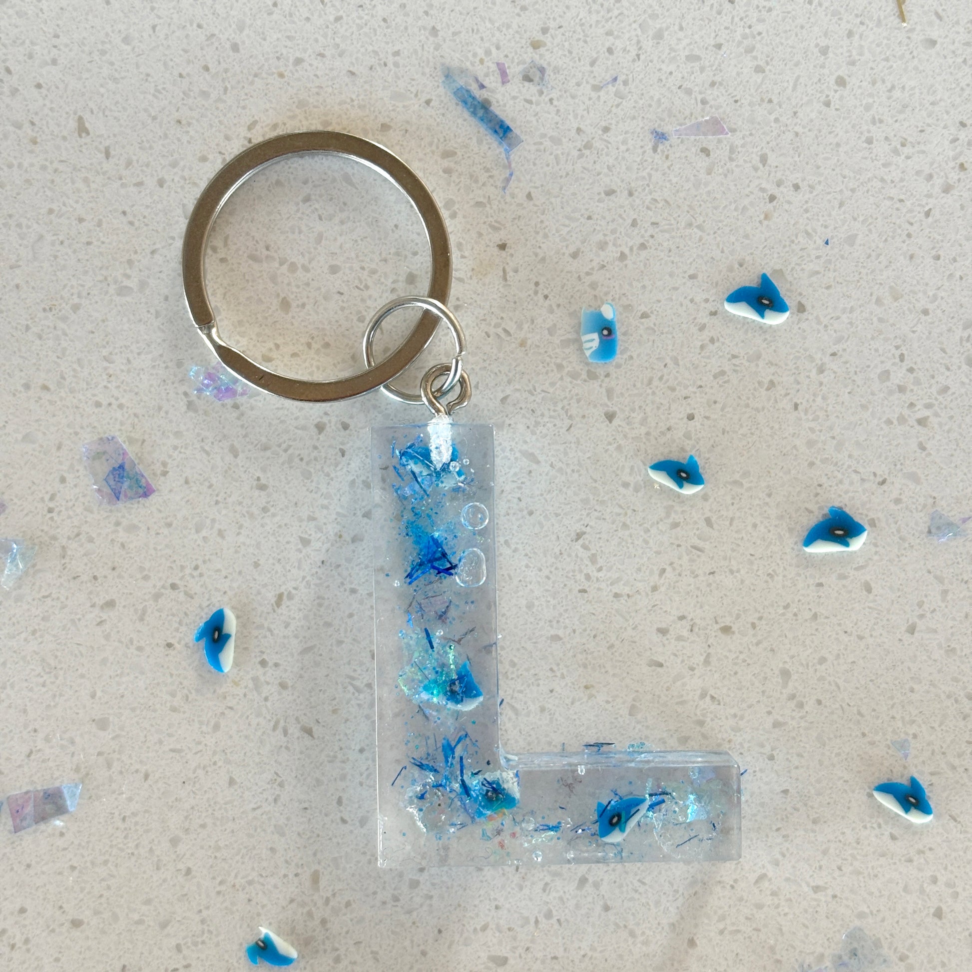 Dive into cuteness with our personalized resin letter keyring, bursting with playful little sharks and glow in the dark balls! Each one is handmade with love, featuring your chosen letter or number.