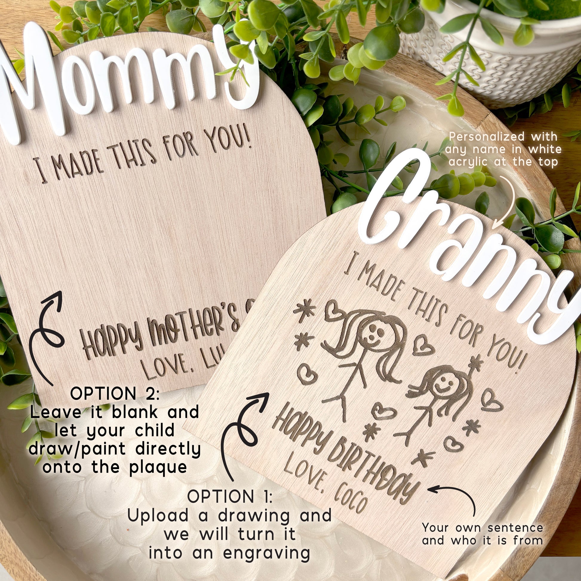 Kids artwork Personalised Mothers Day / Father's Day Plaque; Gifts for Mom and Dad