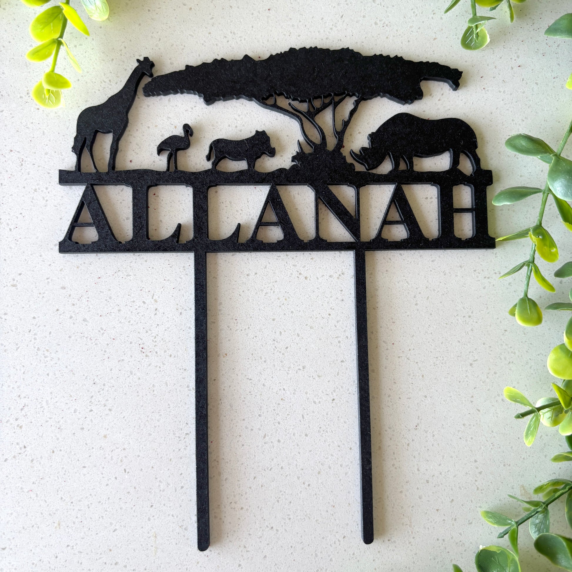Celebrate in style with this African wildlife-inspired cake topper, personalized with your chosen name. Beautifully laser-cut and perfect for safari or nature-themed celebrations.