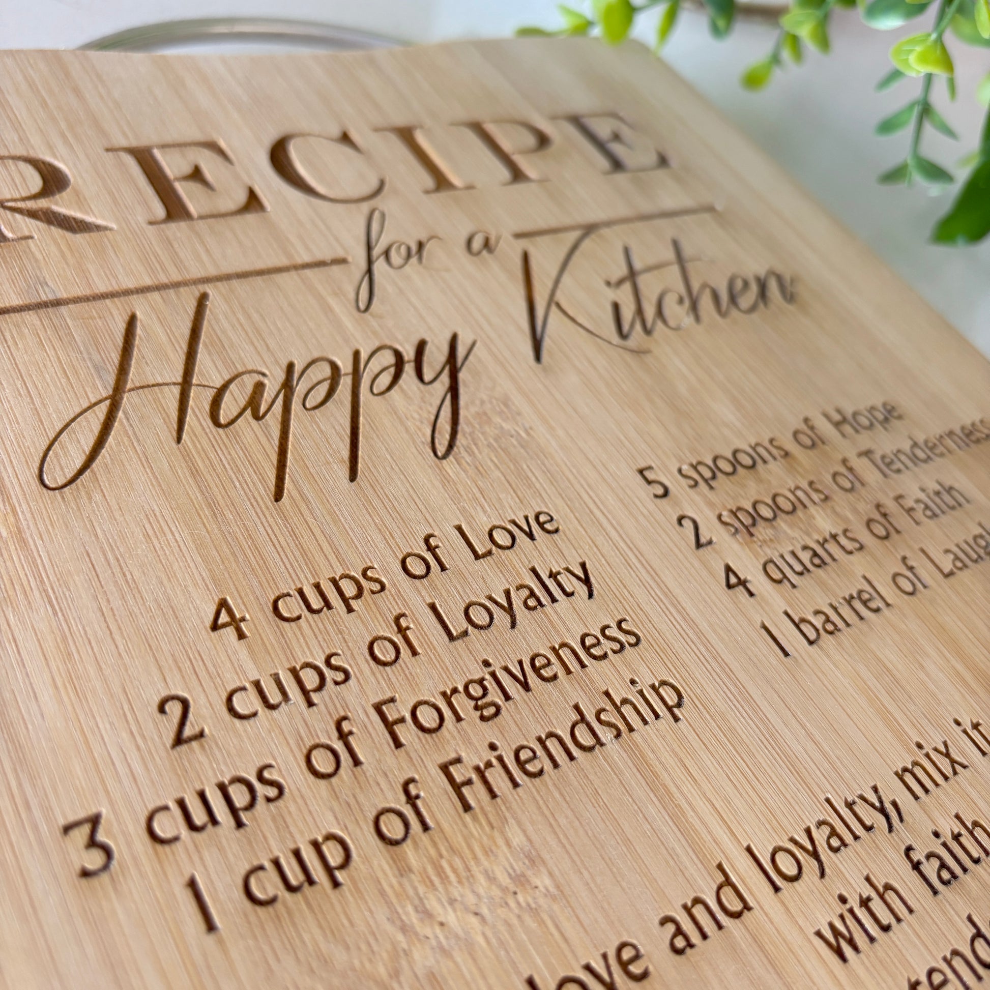 Personalised "Recipe for a Happy Kitchen" engraved cutting board