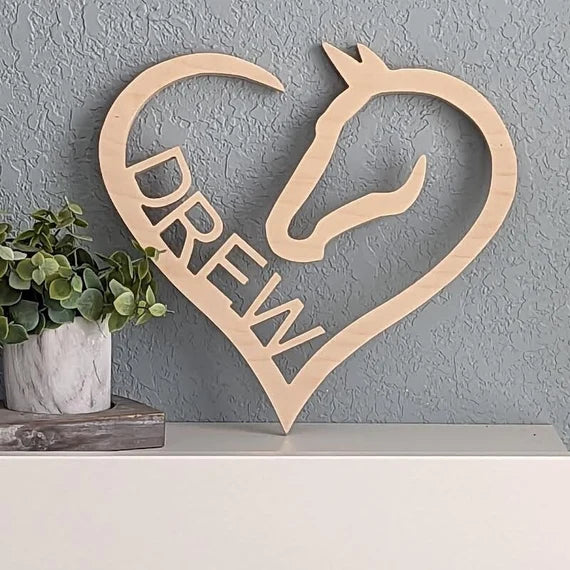 Personalized Wooden Horse Heart Sign, Custom Wooden Horse Decor