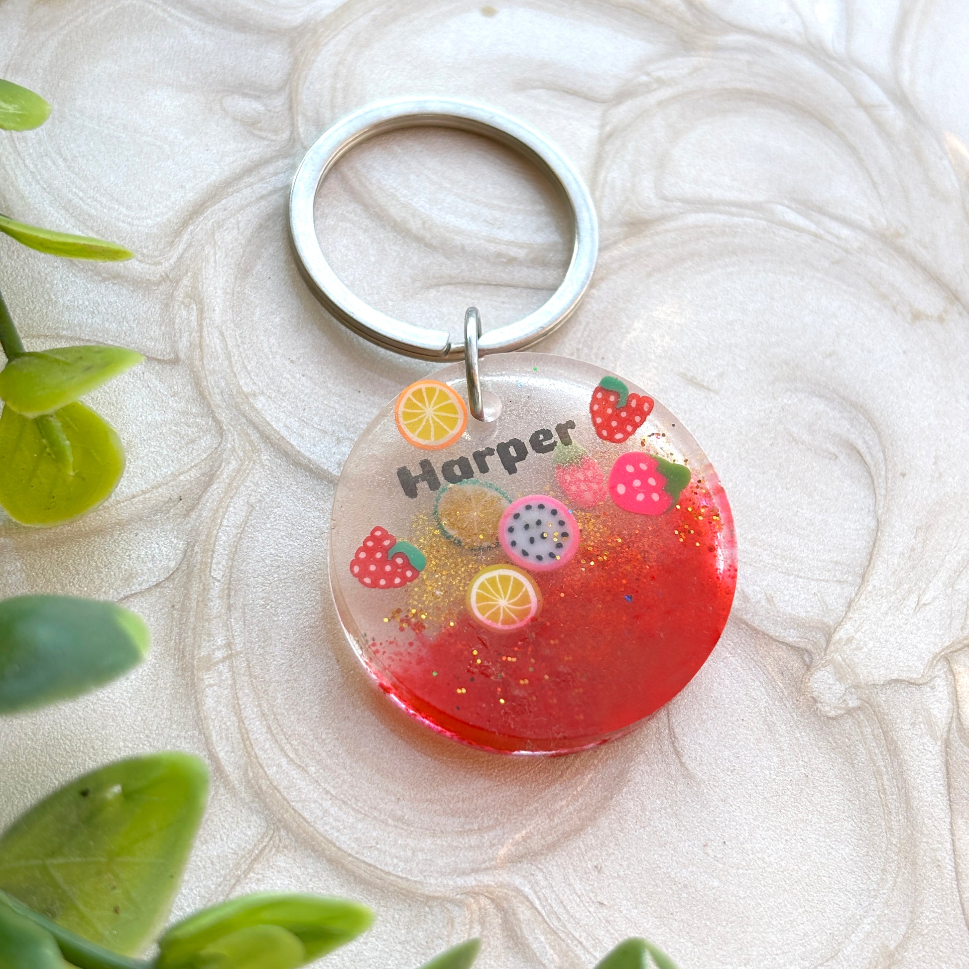 Add a sparkle to any bag or keys with handcrafted resin keyring. Made with a vibrant colour base.