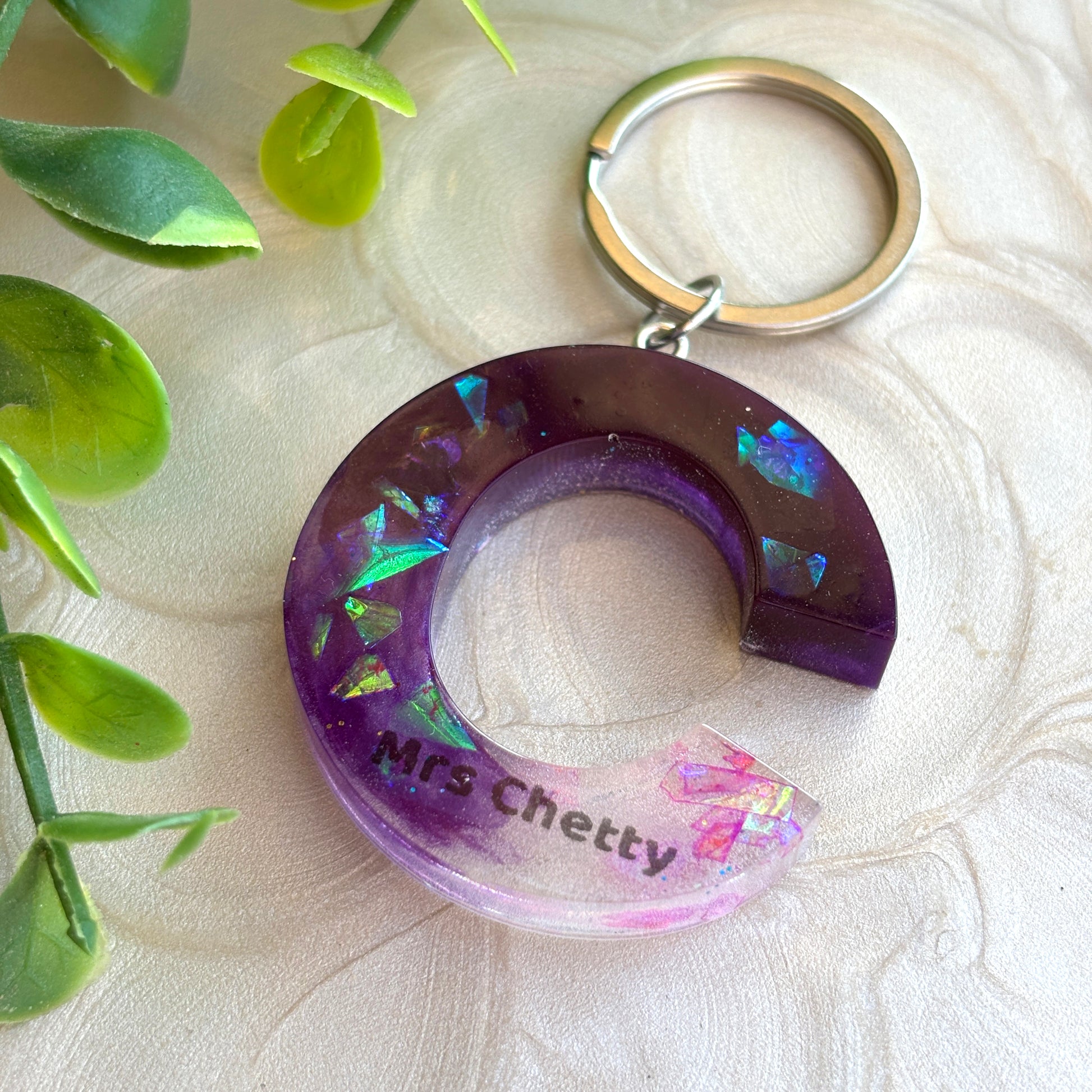 Say thank you in a meaningful way with this personalized resin keyring, handcrafted just for your favourite teacher. Shaped in their initial and filled with shimmering foils and soft purple hues, each piece includes their name for a truly unique touch. A thoughtful, functional keepsake they’ll love carrying every day.