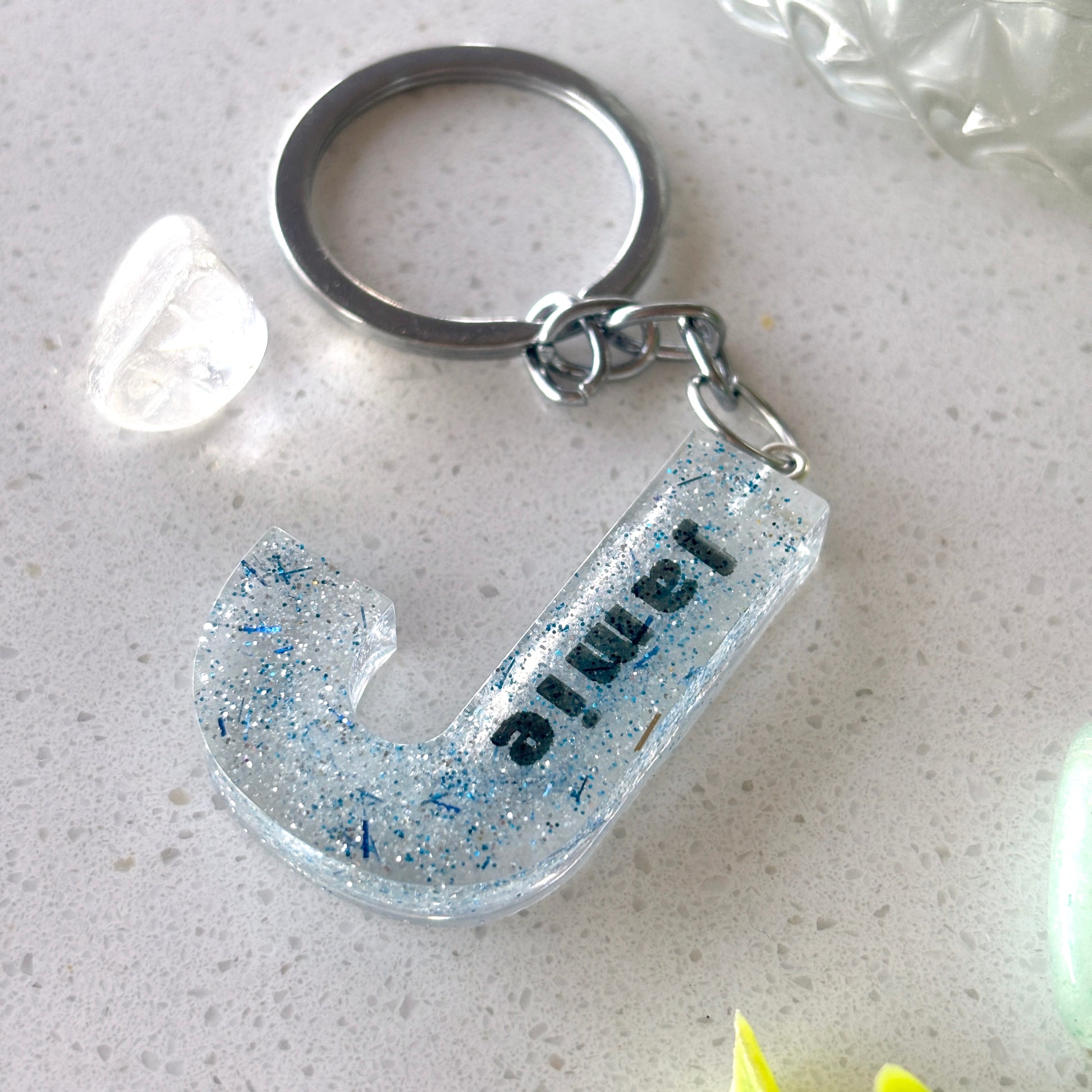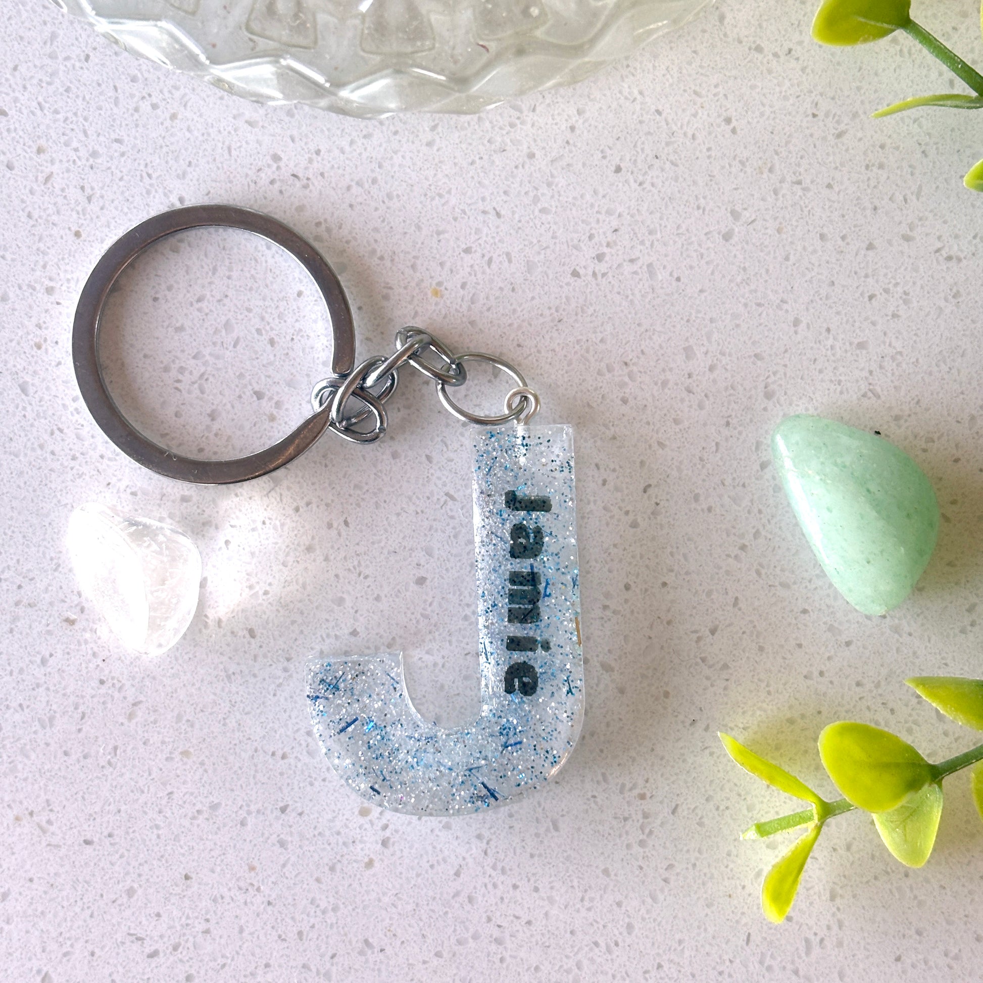 Personalized name keyring in any letter or number with coloured glitter of your choice