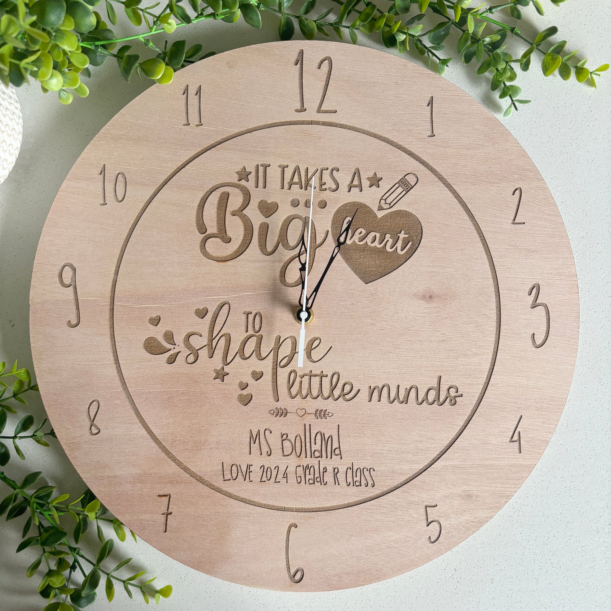 "It Takes a Big Heart" Teacher Appreciation Engraved Clock