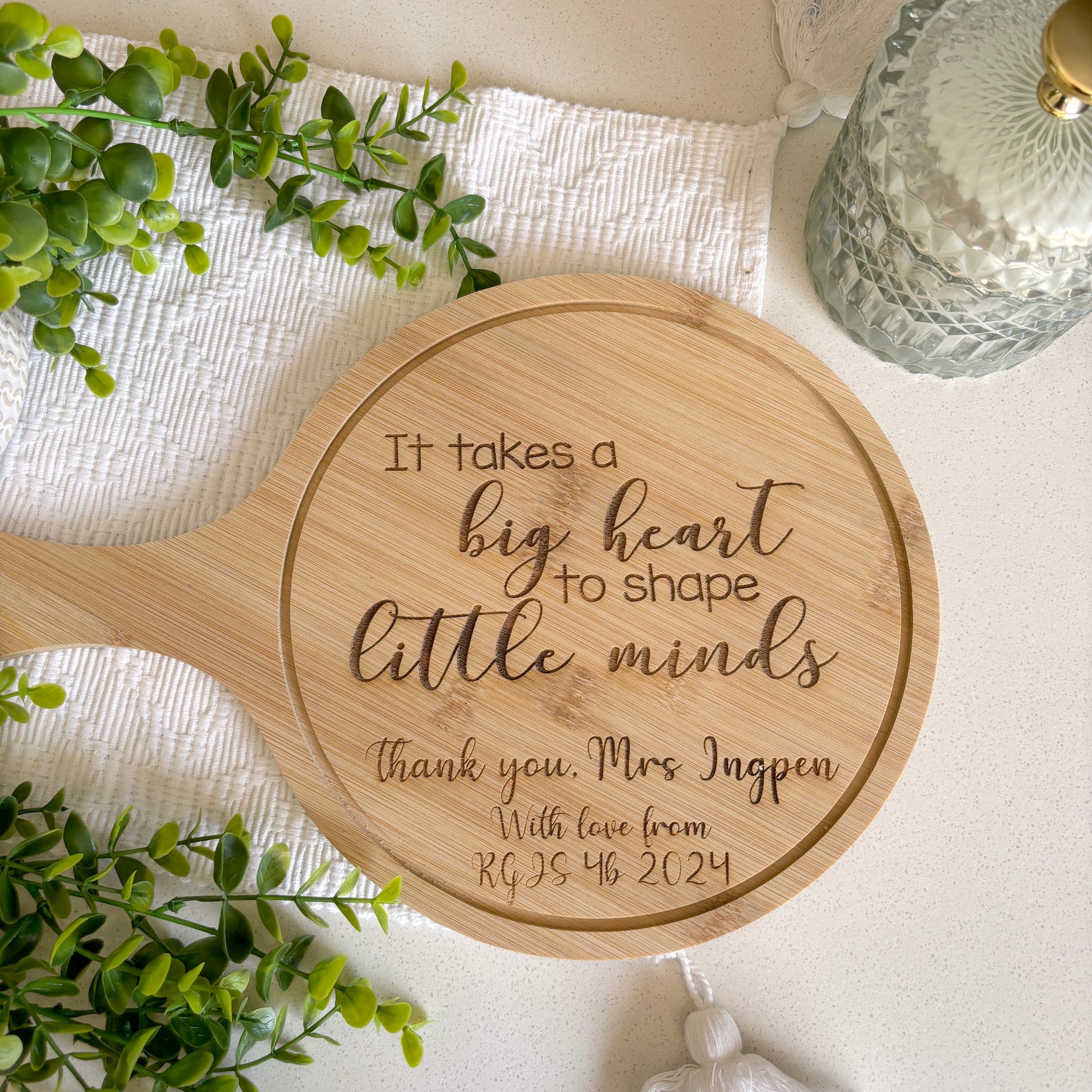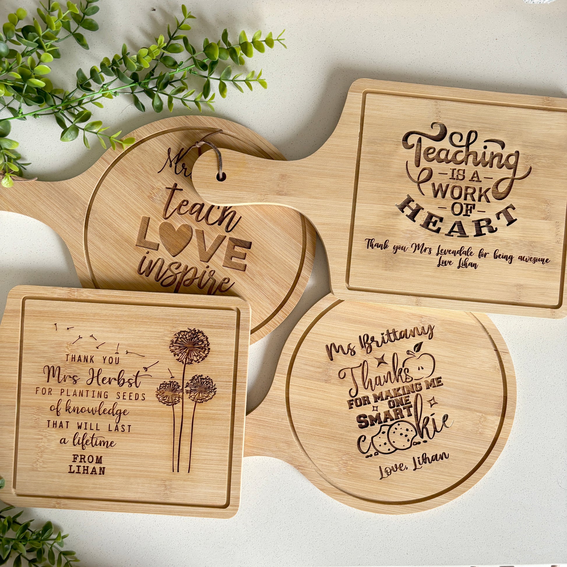 100% bamboo server is engraved with an inspirational teacher quote for our hard working and dedicated teachers that our kiddies have.