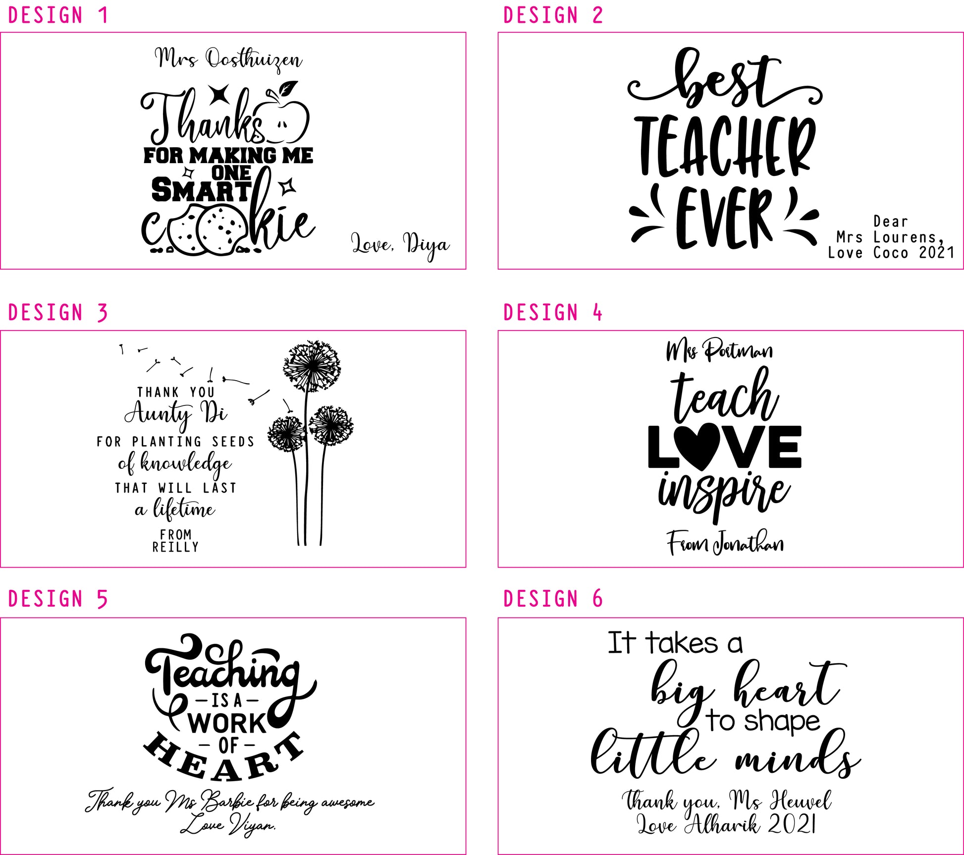 Choose from 6 designs. All designs are persoanlized with the teachers name and who the board is from.