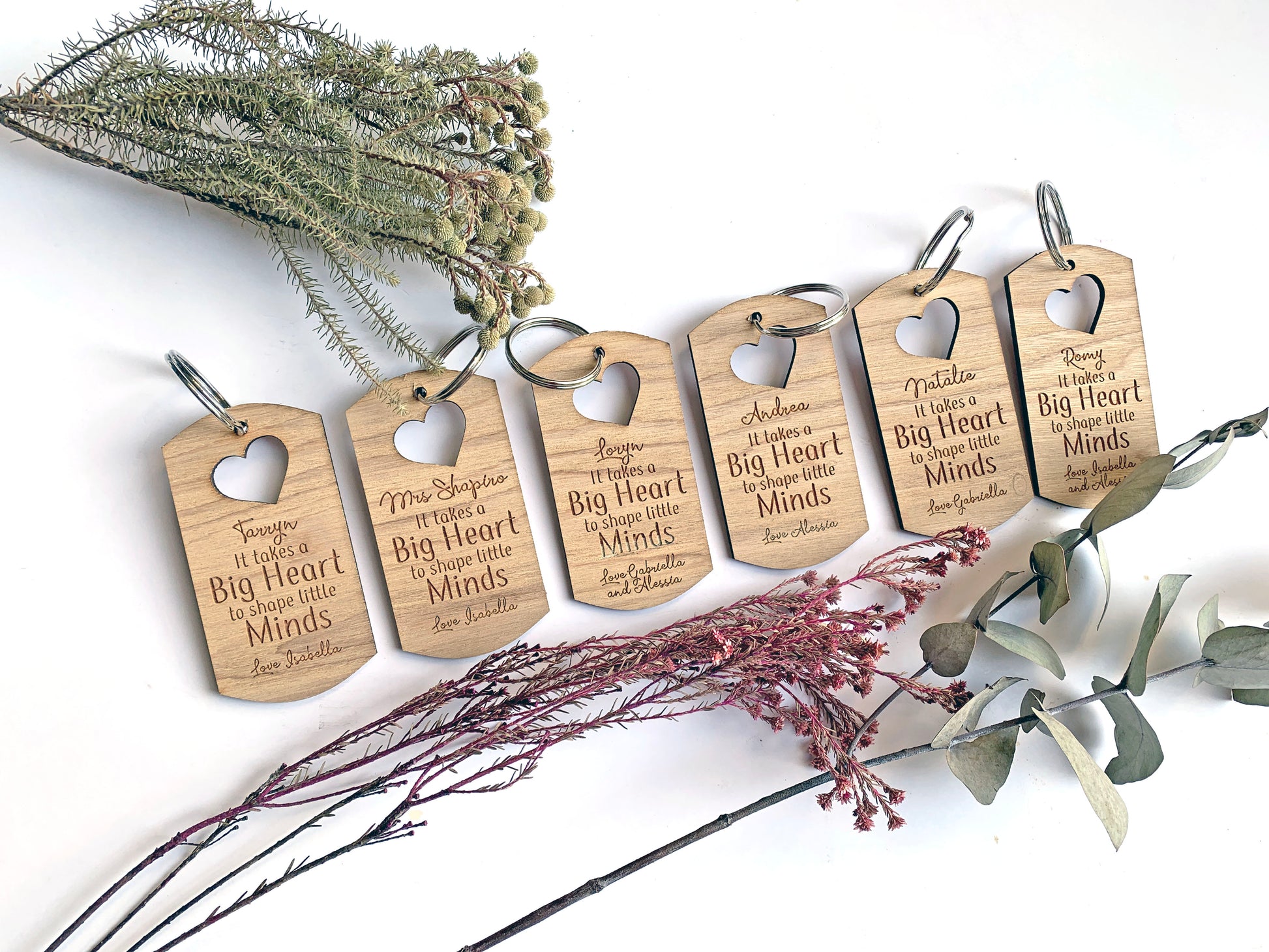 Our key rings are lasercut from wood and engraved. They are personalized with:
