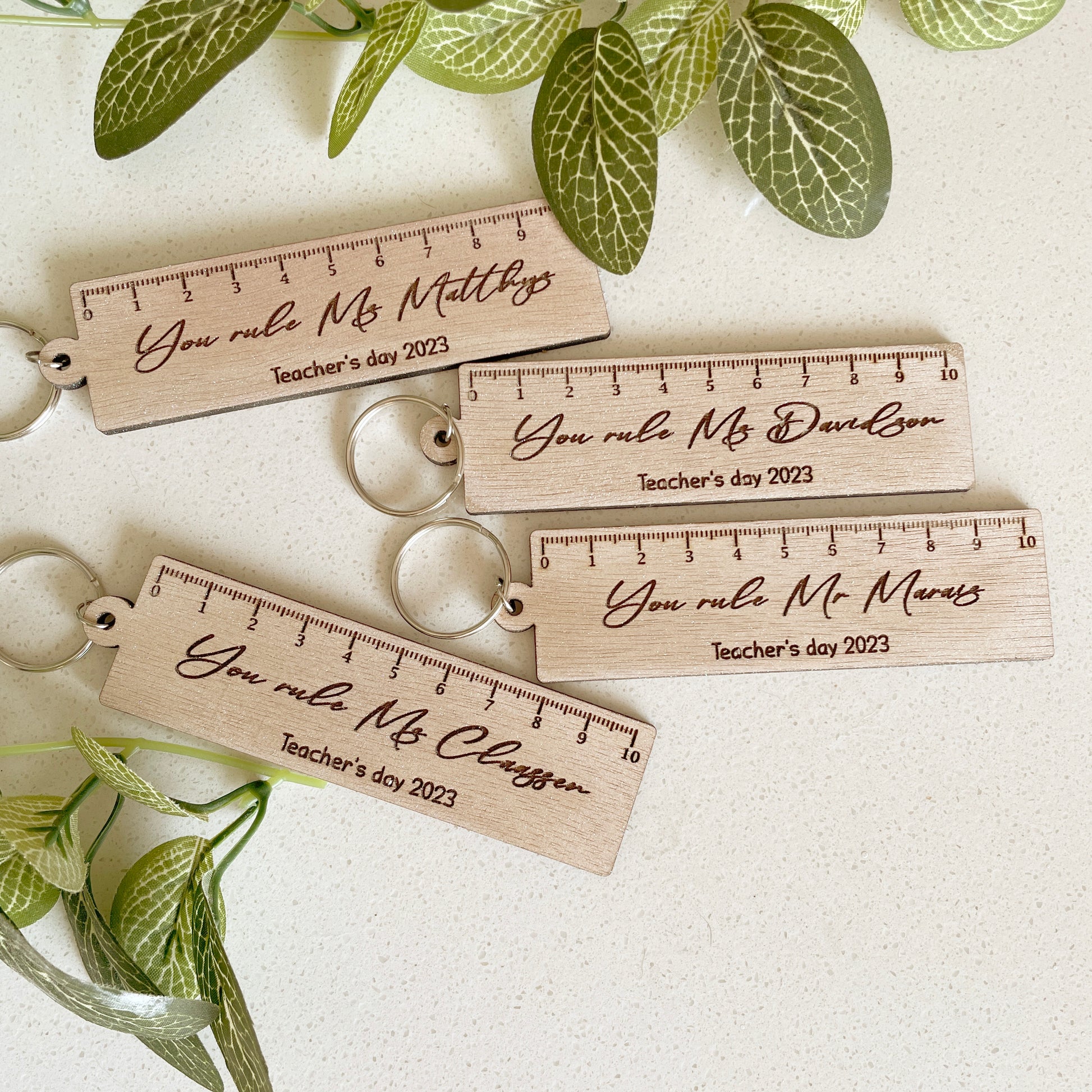 Our keyrings include a special message on the front and personalized with the teachers name and who the keyring is from.