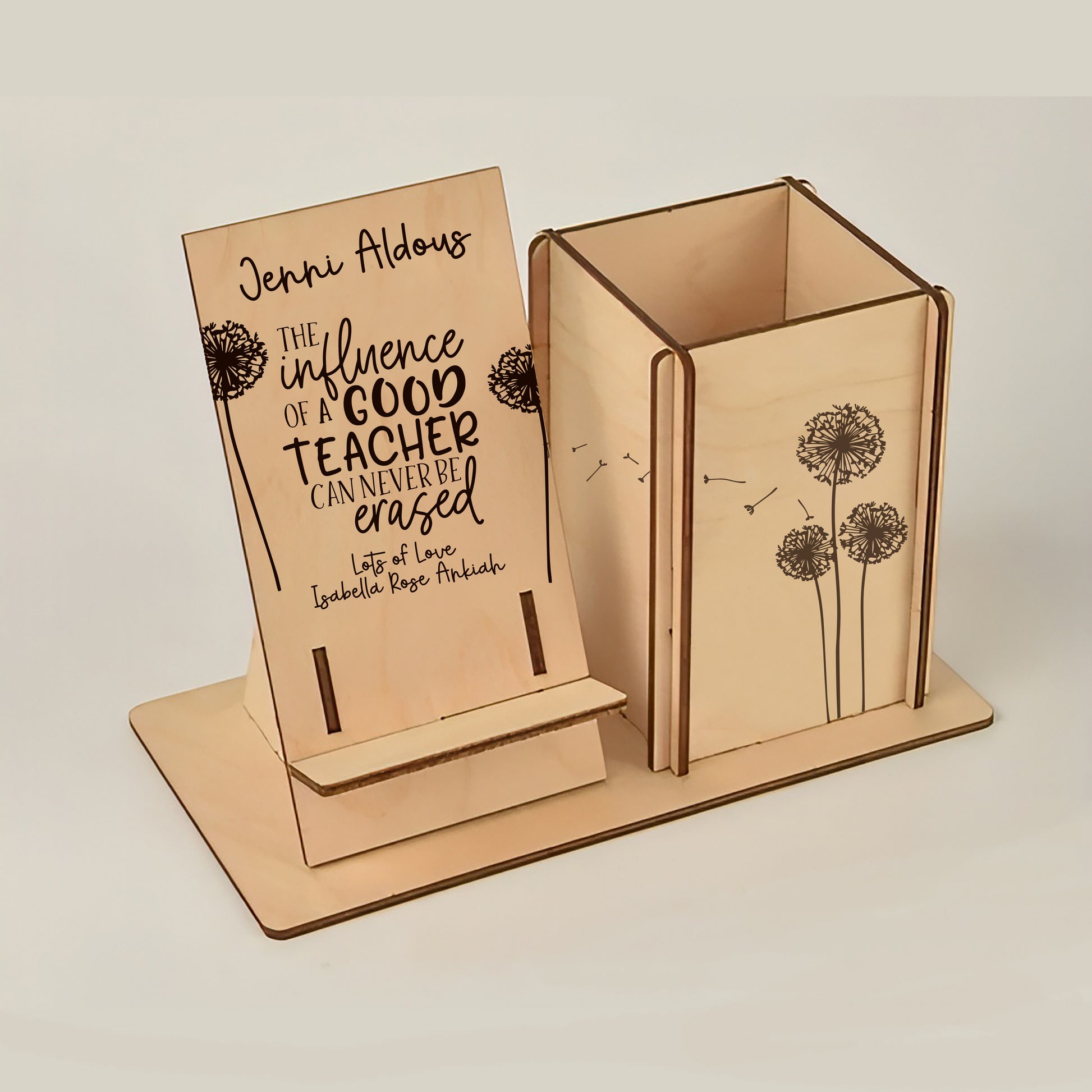 Personalized Wooden Teacher Pencil and phone Holder, Teacher Appreciation Gifts