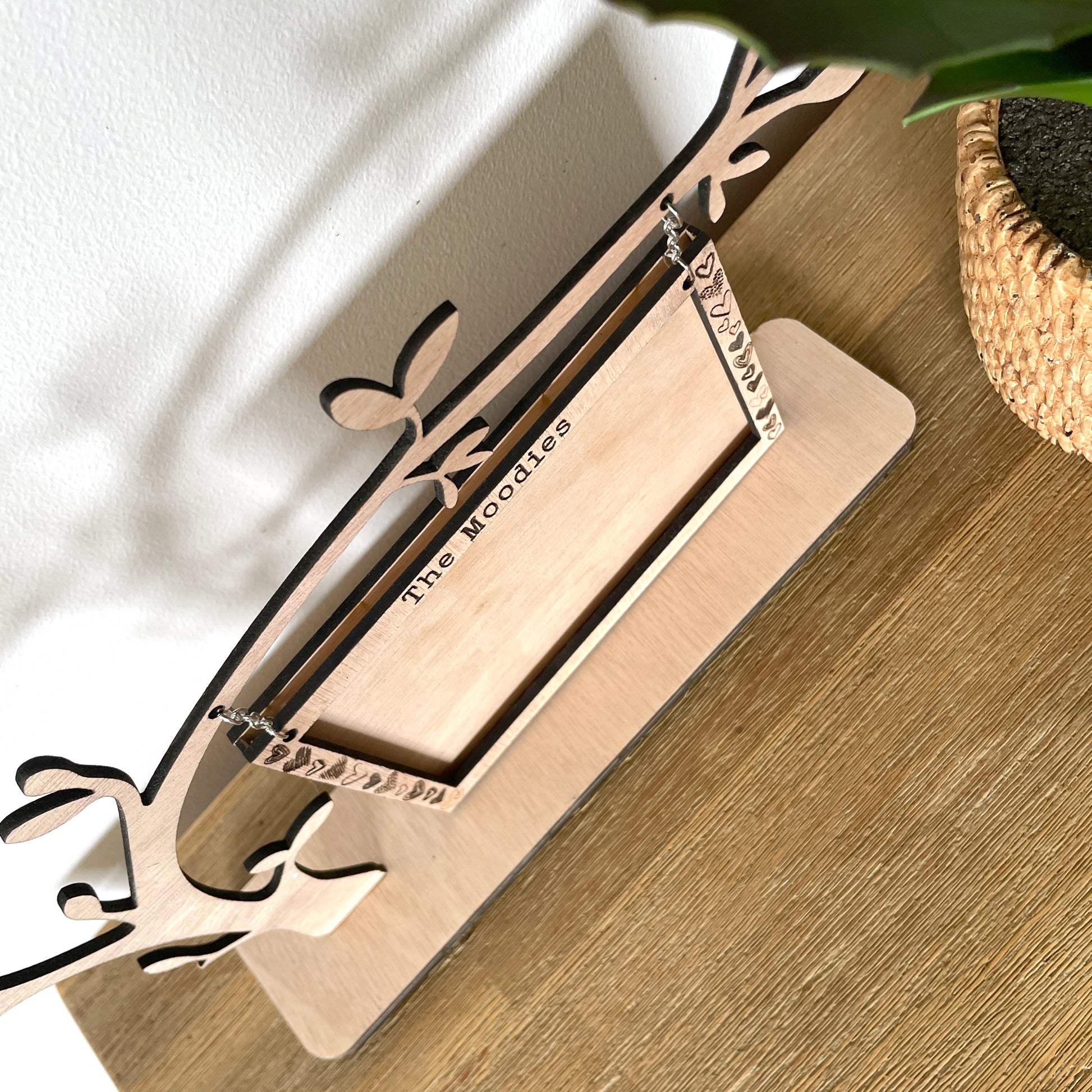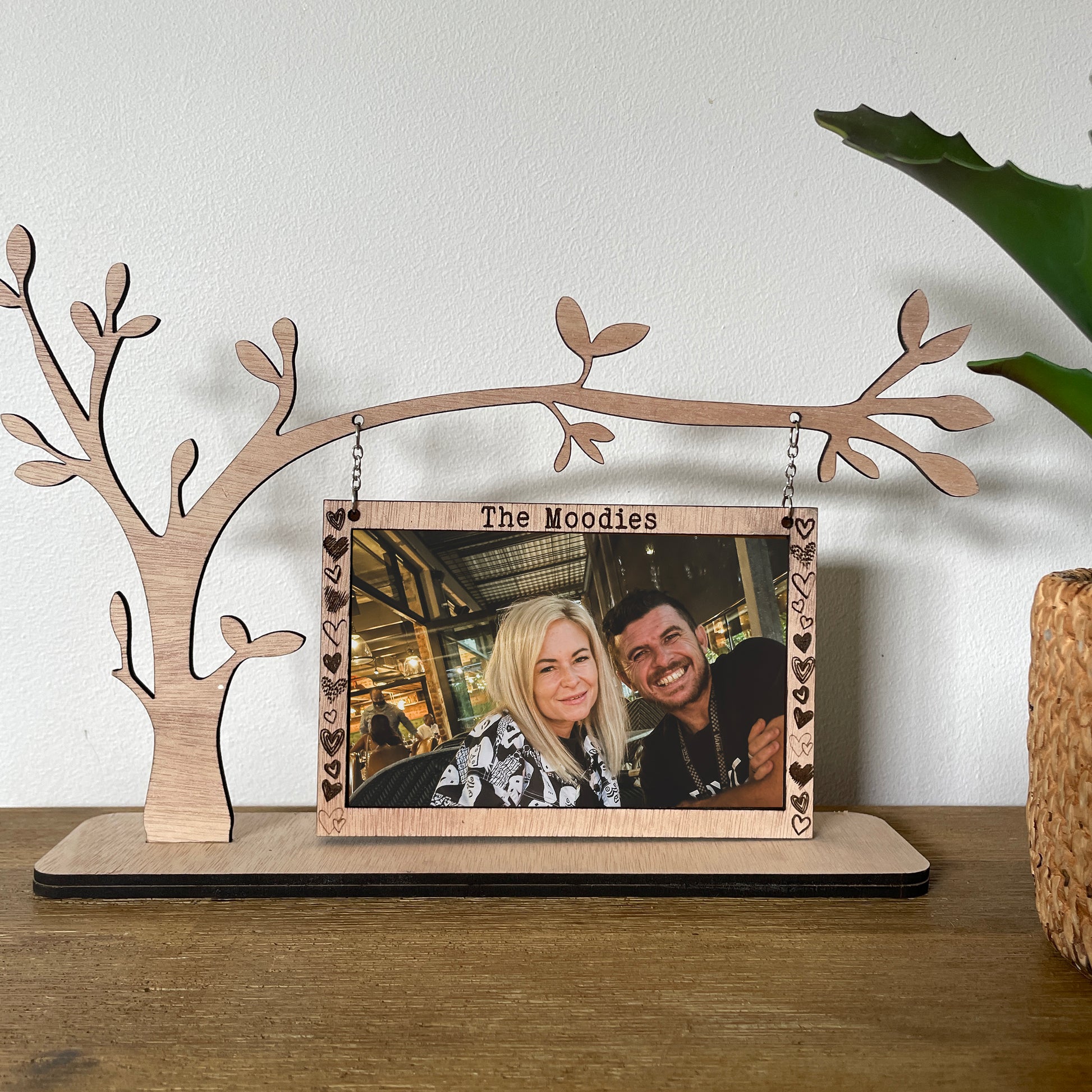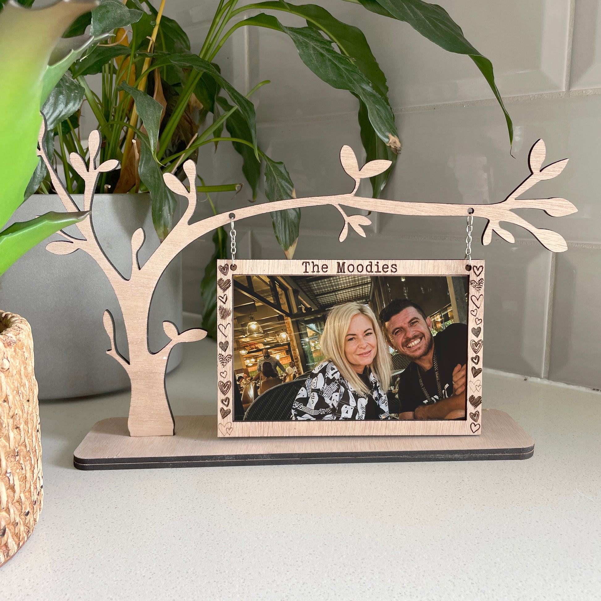 Personalized with any wording at the top and it has hearts on each side of the frame