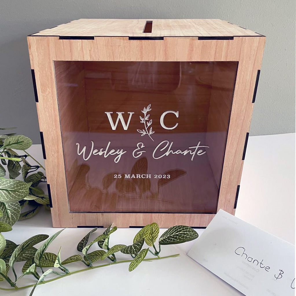Personalised Engraved Wooden Letter Box; Personalised Wedding Decor